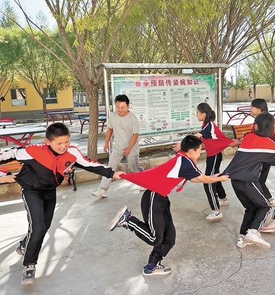 閆澤峰在和學生們做游戲。