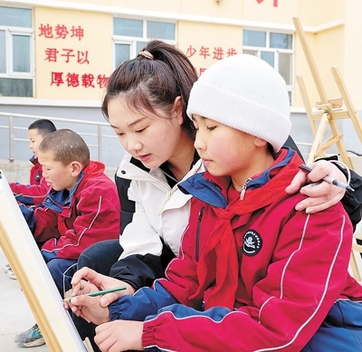 2023年,高潮從山西大同大學美術學院畢業(yè)前,看到了西部計劃的招募信息?!耙ツ敲催h的地方當老師嗎?”高潮有點猶豫。她小時候在鄉(xiāng)村小學讀書,因為老師少,很多課程都開展不起來,“想到自己小時候的經(jīng)歷,我下定了決心。”