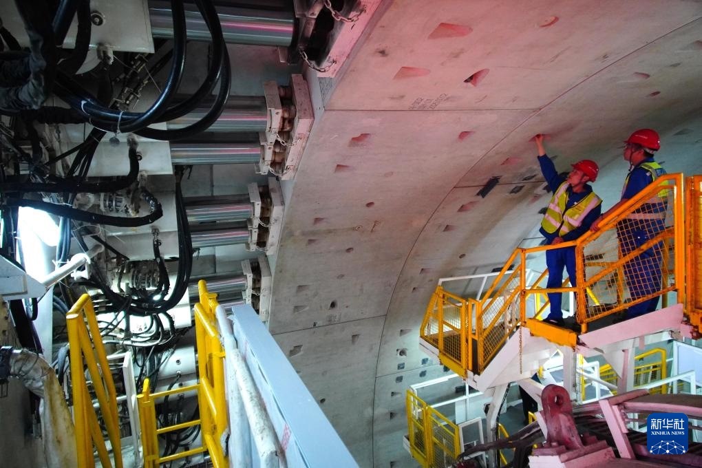 5月9日,中鐵十四局技術(shù)人員在“啟航號(hào)”盾構(gòu)機(jī)內(nèi)巡查。