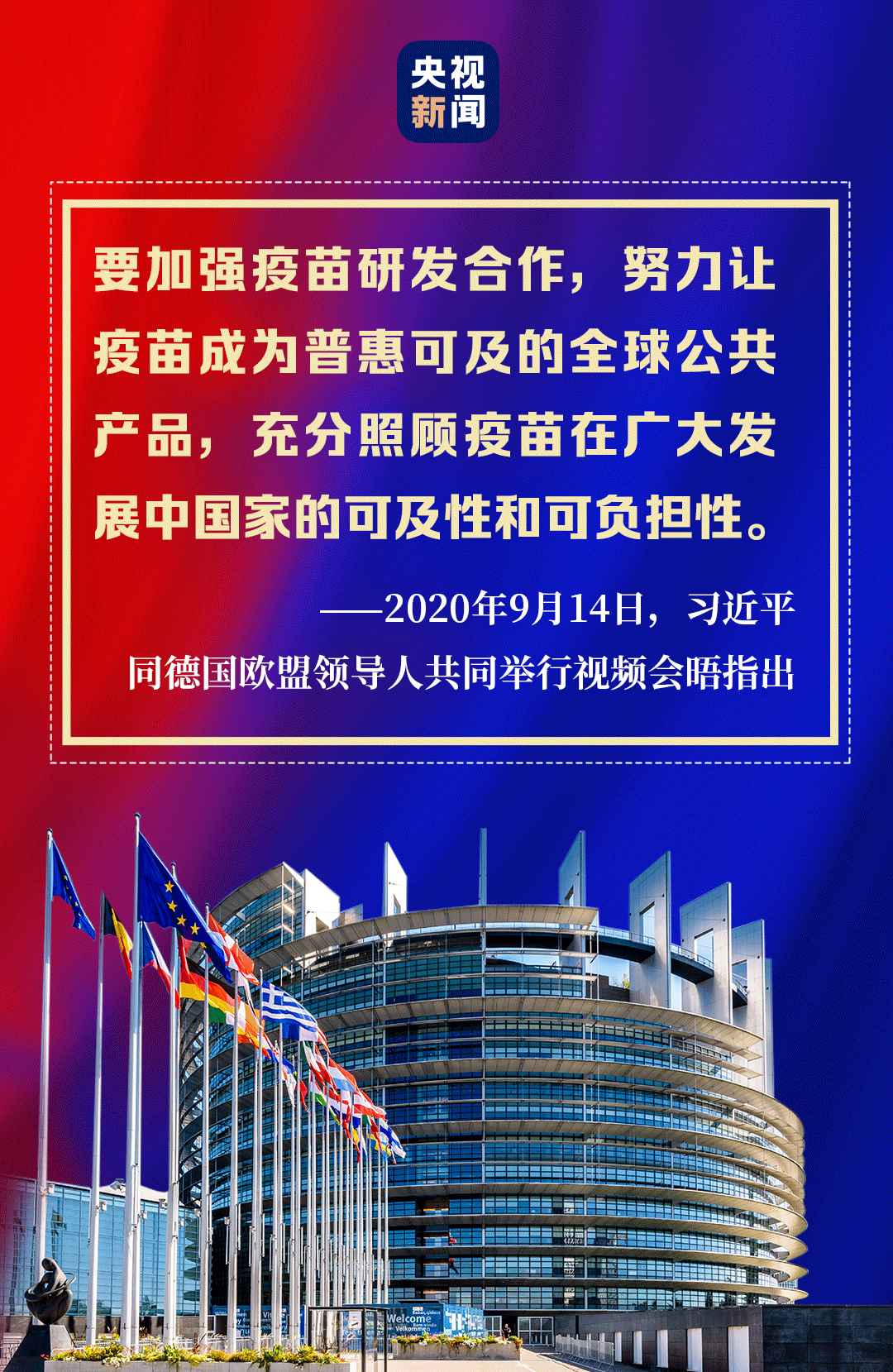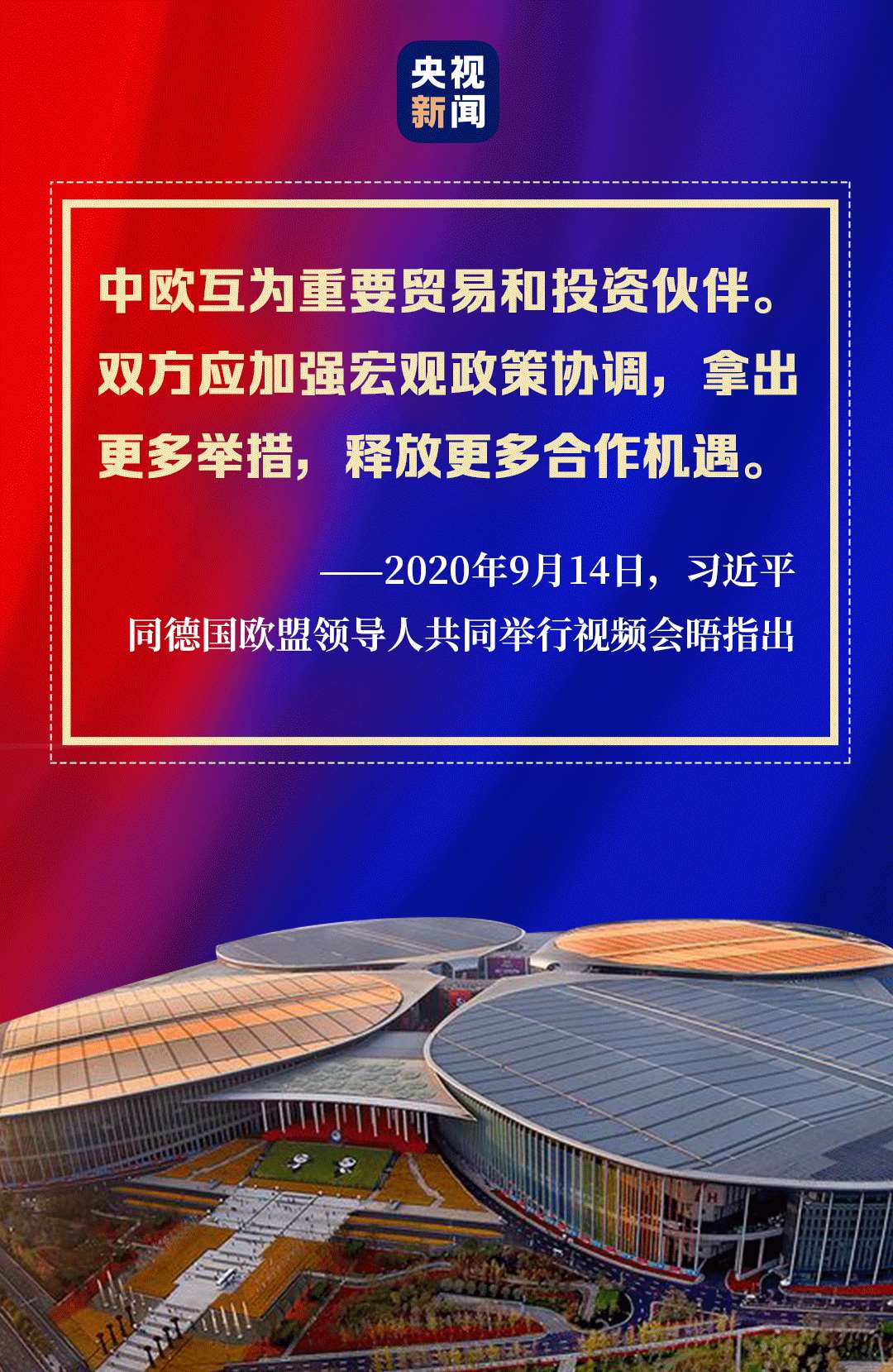 9月14日,習(xí)近平主席在北京同歐盟輪值主席國(guó)德國(guó)總理默克爾、歐洲理事會(huì)主席米歇爾、歐盟委員會(huì)主席馮德萊恩共同舉行會(huì)晤,會(huì)晤以視頻方式舉行。