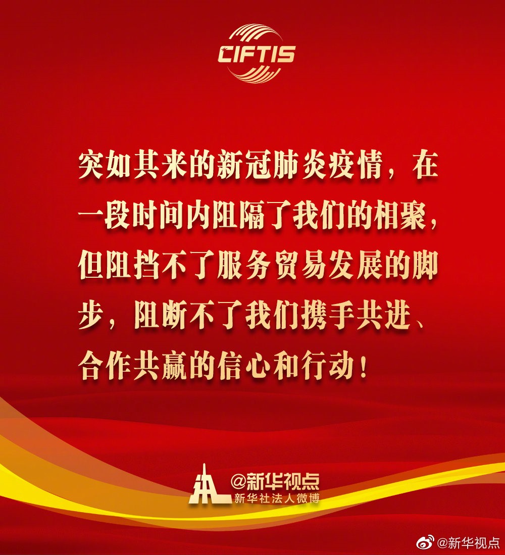 國(guó)家主席習(xí)近平在2020年中國(guó)國(guó)際服務(wù)貿(mào)易交易會(huì)全球服務(wù)貿(mào)易峰會(huì)上的視頻致辭金句