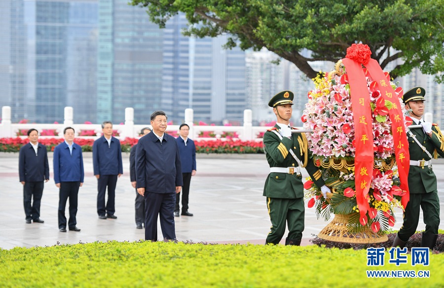 10月14日,深圳經(jīng)濟(jì)特區(qū)建立40周年慶祝大會在廣東省深圳市隆重舉行。中共中央總書記、國家主席、中央軍委主席習(xí)近平在會上發(fā)表重要講話。這是當(dāng)天下午,習(xí)近平來到蓮花山公園,向鄧小平同志銅像敬獻(xiàn)花籃。 新華社記者 王曄 攝