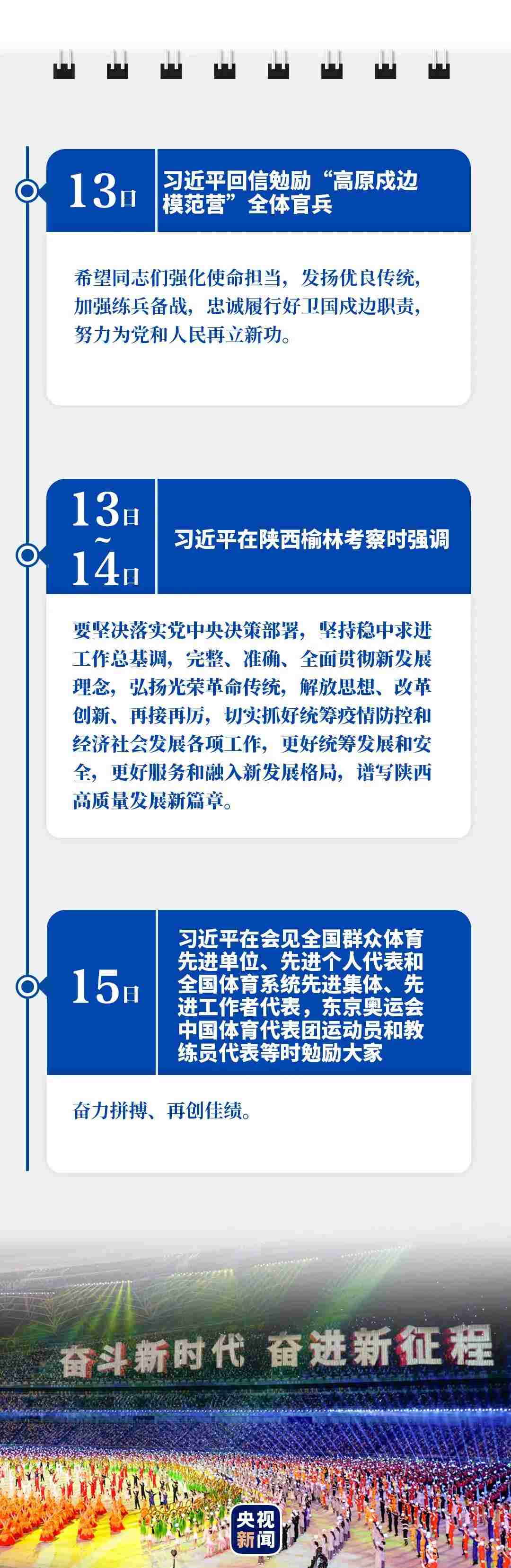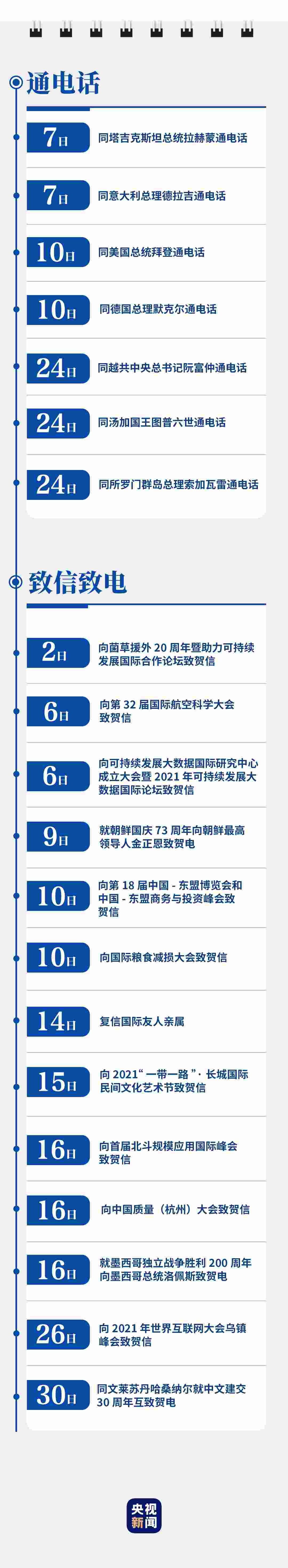 剛剛過去的9月,給人民英雄敬獻花籃,緬懷英烈、表達哀思;赴革命舊址考察,強調堅守信仰、堅定信念;出席重要會議,擘畫為黨育人、為國育才;開展多次“云外交”活動,主張講信修睦、合作共贏……習近平行程滿滿,話語鏗鏘。