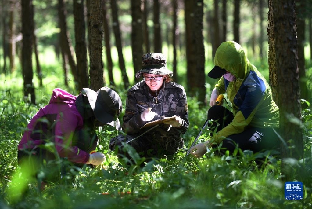 工作人員在河北塞罕壩機械林場采集數據(2017年7月12日攝)。新華社記者王曉攝