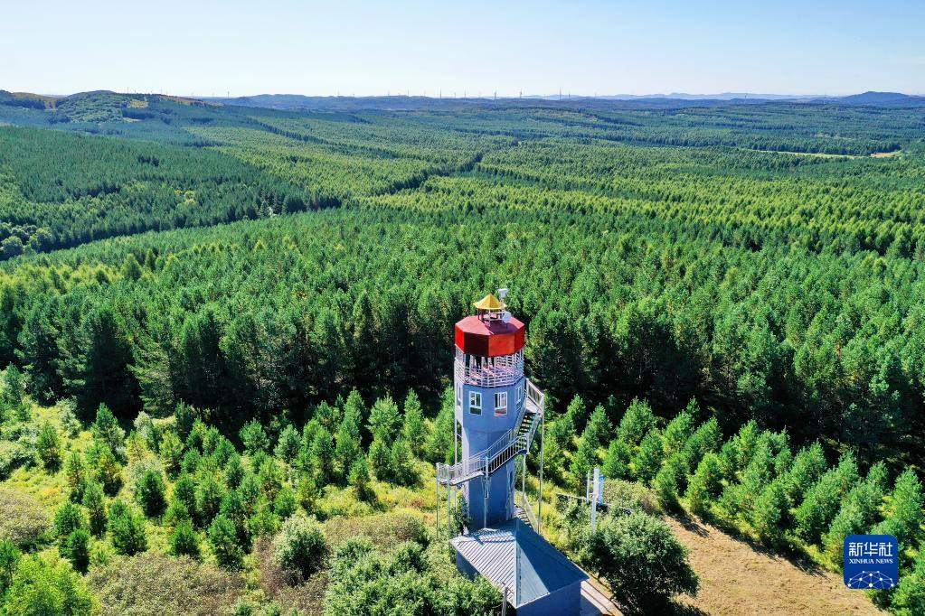 河北塞罕壩機械林場內的望海樓(8月23日攝,無人機照片)。新華社記者牟宇攝