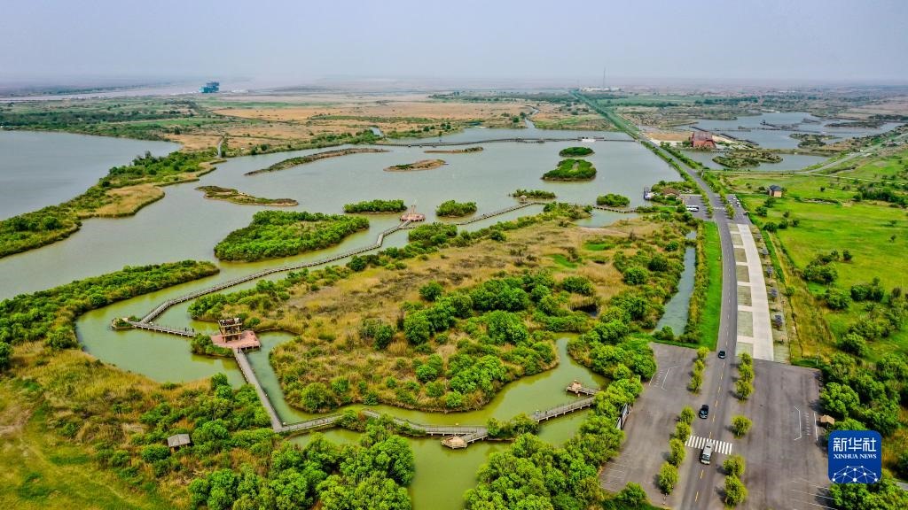 這是5月13日拍攝的山東黃河三角洲國家級(jí)自然保護(hù)區(qū)景色(無人機(jī)照片)。新華社記者 郭緒雷 攝