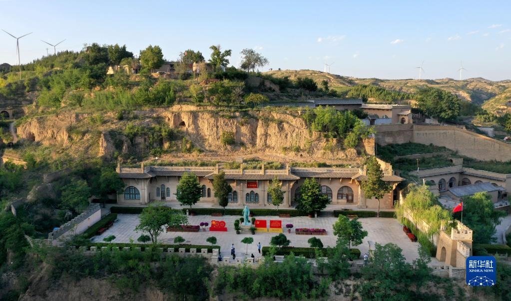 游人在陜西省榆林市米脂縣楊家溝革命舊址參觀(9月10日攝,無人機(jī)照片)。新華社記者 陶明 攝