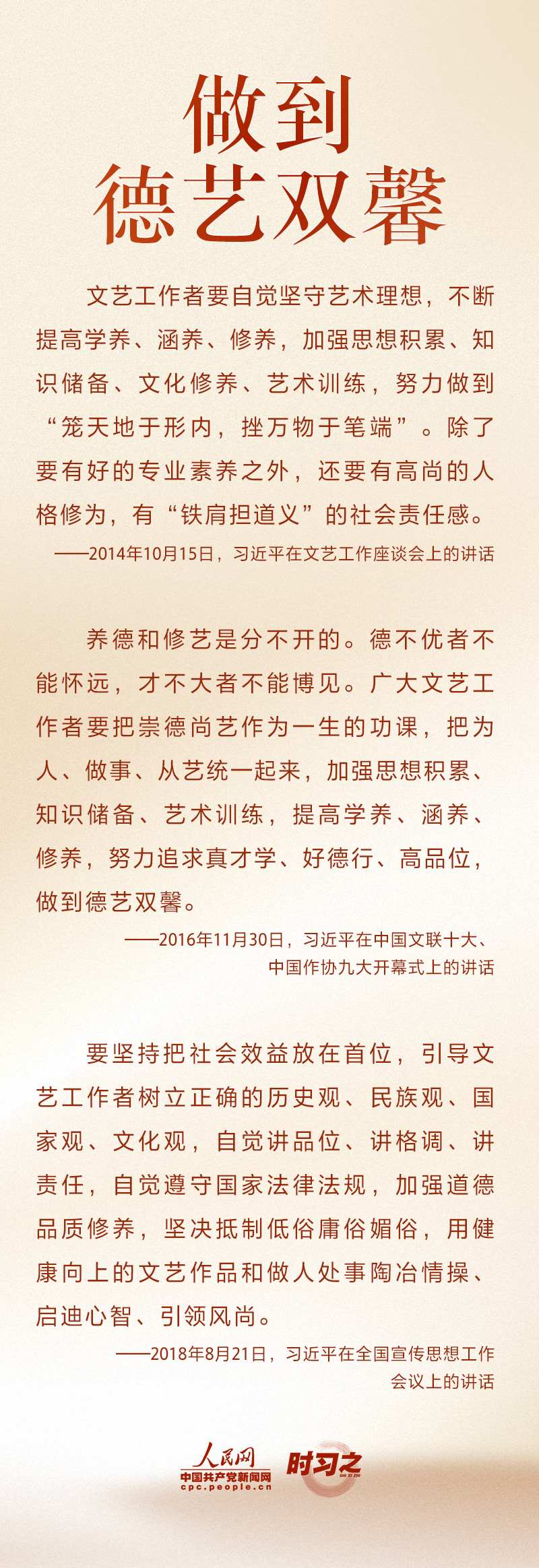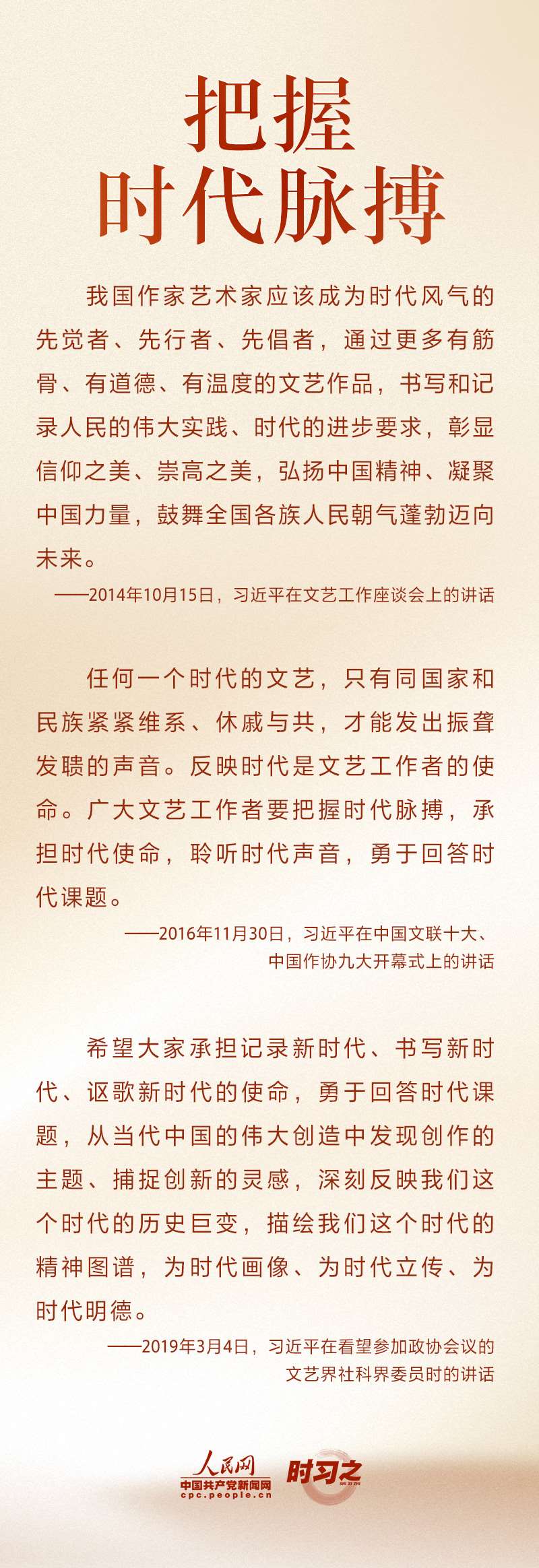 文運(yùn)同國運(yùn)相牽,文脈同國脈相連。新時(shí)代文藝工作者承擔(dān)著記錄新時(shí)代、書寫新時(shí)代、謳歌新時(shí)代的重大使命?!拔乃囀氰T造靈魂的工程,文藝工作者是靈魂的工程師?!秉h的十八大以來,習(xí)近平不斷激勵(lì)文藝工作者不辜負(fù)時(shí)代召喚、不辜負(fù)人民期待,以德服人、以文化人。