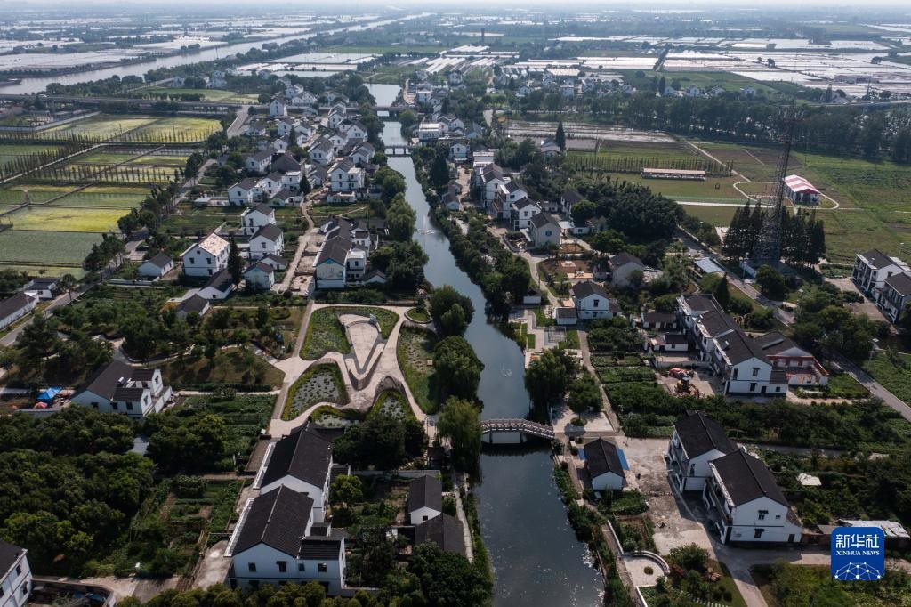 空中俯瞰浙江省嘉興市嘉善縣姚莊鎮(zhèn)橫港村(2021年7月12日攝,無人機照片)。近年來,嘉善縣建設(shè)高標(biāo)準(zhǔn)農(nóng)田14.8萬畝;同時建設(shè)產(chǎn)業(yè)幫扶聯(lián)合體、農(nóng)業(yè)社會化服務(wù)綜合體等,不斷拓寬農(nóng)民增收致富渠道,走出了一條城鄉(xiāng)深度融合推動共同富裕的實踐路子。新華社記者徐昱攝