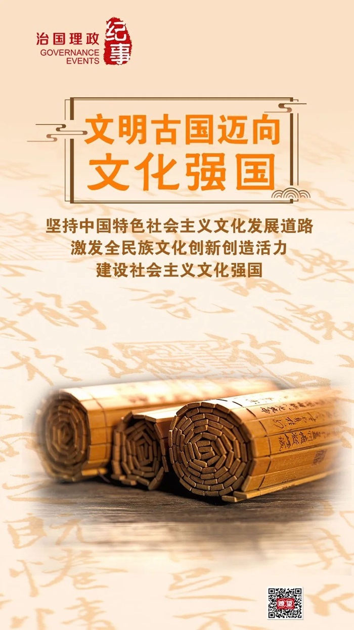 ◆ 黨的十八大以來(lái),以習(xí)近平同志為核心的黨中央高度重視文化強(qiáng)國(guó)建設(shè),從黨的十八屆三中全會(huì)提出要“緊緊圍繞建設(shè)社會(huì)主義核心價(jià)值體系、社會(huì)主義文化強(qiáng)國(guó)深化文化體制改革”,到黨的十九大報(bào)告強(qiáng)調(diào)“要堅(jiān)持中國(guó)特色社會(huì)主義文化發(fā)展道路,激發(fā)全民族文化創(chuàng)新創(chuàng)造活力,建設(shè)社會(huì)主義文化強(qiáng)國(guó)”,再到黨的十九屆五中全會(huì)明確提出到2035年建成文化強(qiáng)國(guó),“十四五”規(guī)劃和2035年遠(yuǎn)景目標(biāo)綱要提出“促進(jìn)滿(mǎn)足人民文化需求和增強(qiáng)人民精神力量相統(tǒng)一,推進(jìn)社會(huì)主義文化強(qiáng)國(guó)建設(shè)”,社會(huì)主義文化強(qiáng)國(guó)建設(shè)不斷深入向前
