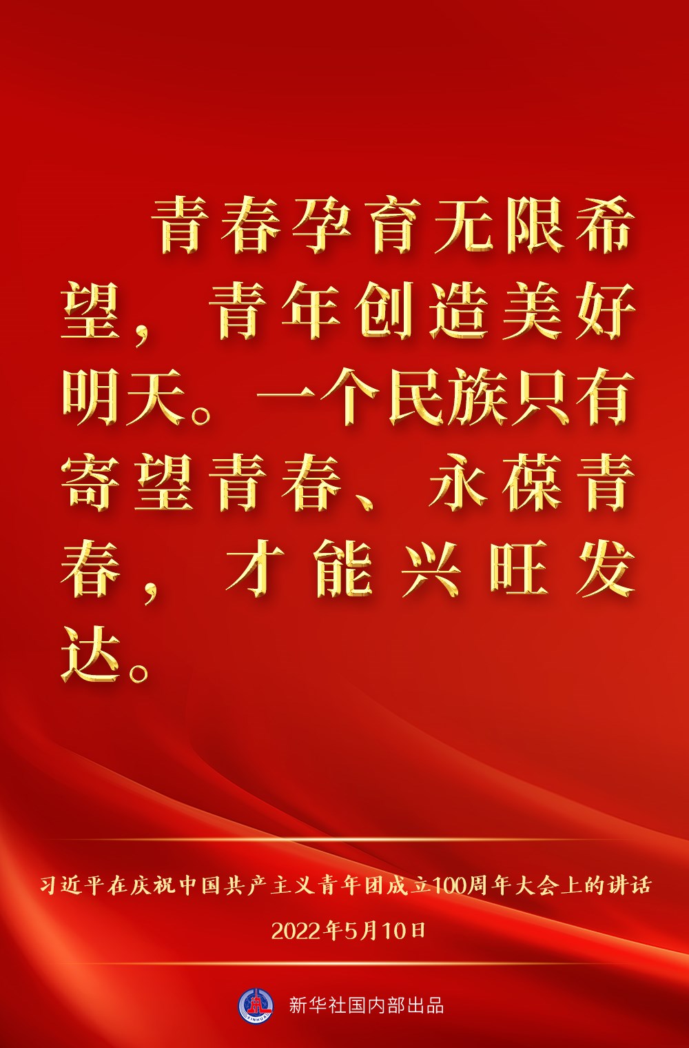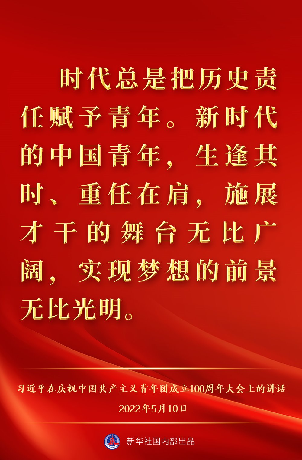 5月10日上午,中共中央總書記、國家主席、中央軍委主席習(xí)近平出席慶祝中國共產(chǎn)主義青年團成立100周年大會并發(fā)表重要講話,一起來看金句。
