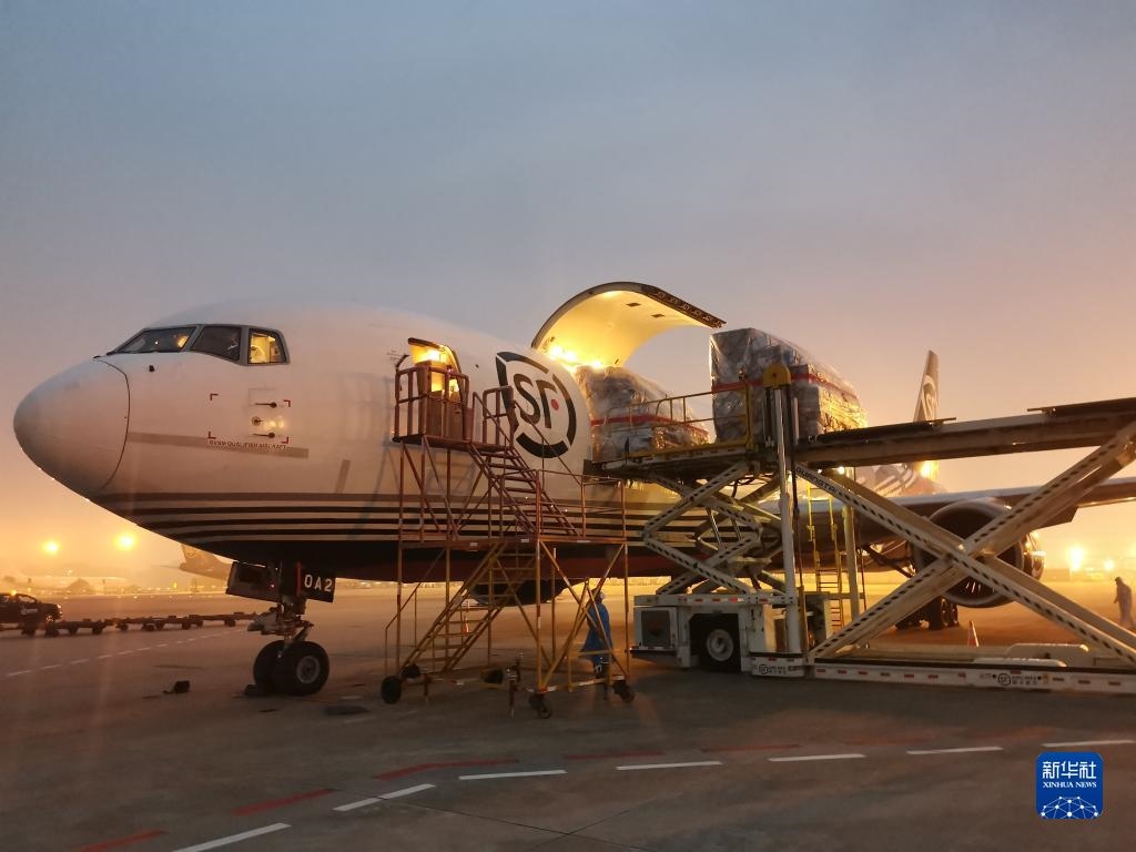 一架載有45噸物資的順豐航空貨運(yùn)包機(jī)從深圳寶安國際機(jī)場飛往香港,深港兩地貨運(yùn)包機(jī)航線正式開通(2022年3月19日攝)。新華社發(fā)