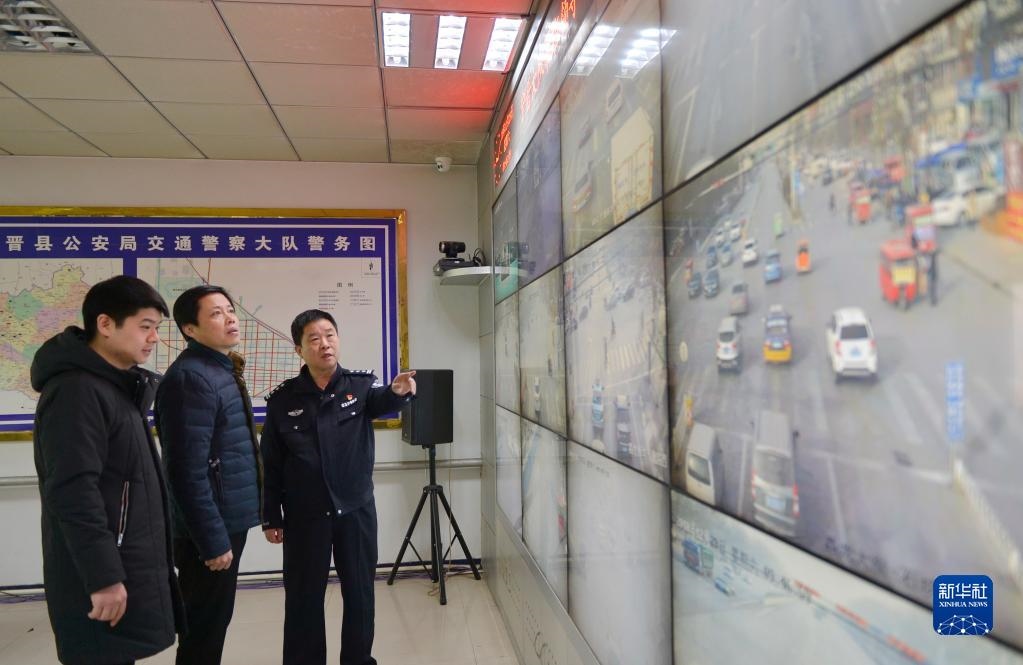 河北省寧晉縣紀檢干部借助公安機關交通監(jiān)控系統(tǒng),實時查看公車運行軌跡,嚴查公車私用問題( 2018年12月29日攝)。新華社記者 牟宇 攝