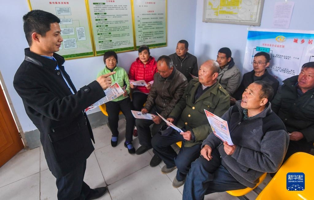 河北景縣紀檢監(jiān)察干部為杜橋鎮(zhèn)西徐莊村村民講解監(jiān)察法知識(2018年4月4日攝)。新華社記者 李曉果 攝