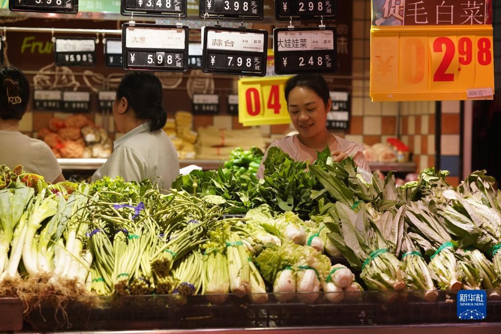 2022年7月15日,市民在湖南省懷化市通道侗族自治縣一家超市選購(gòu)蔬菜。新華社發(fā)(吳三東 攝)