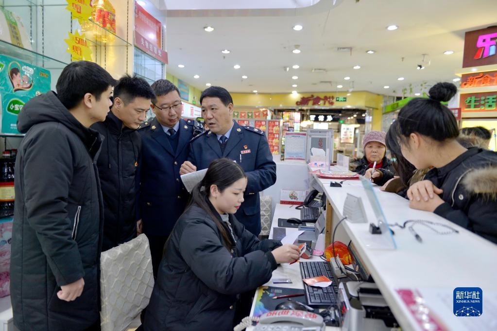 河北寧晉縣紀(jì)檢干部與稅務(wù)稽查人員在當(dāng)?shù)匾患页袡z查是否有單位公款購買購物卡情況(2018年12月29日攝)。新華社記者 牟宇 攝