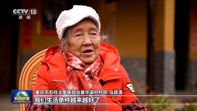 重慶市石柱土家族自治縣華溪村村民 馬培清:我們生活條件越來越好了,不愁吃、不愁穿。我們住的房子也寬敞了,一家大小吃的自來水干干凈凈的。現(xiàn)在我們的生活條件發(fā)生的變化是習(xí)總書記給我們帶來的,非常高興。