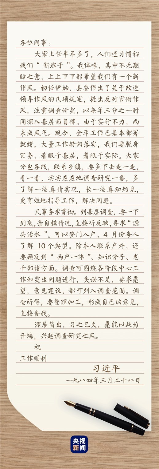 3月底的一天,河北正定縣委、縣人大常委會(huì)、縣政府、縣政協(xié)四大班子領(lǐng)導(dǎo)成員,同時(shí)收到一封內(nèi)容相同的信。信中,“注重調(diào)查研究”“著眼于基層,著眼于實(shí)際”“實(shí)實(shí)在在地調(diào)查研究一番”,言之切切。接到這封信,正定四大班子領(lǐng)導(dǎo)都坐不住了?!傲?xí)書記這回較真了??!”