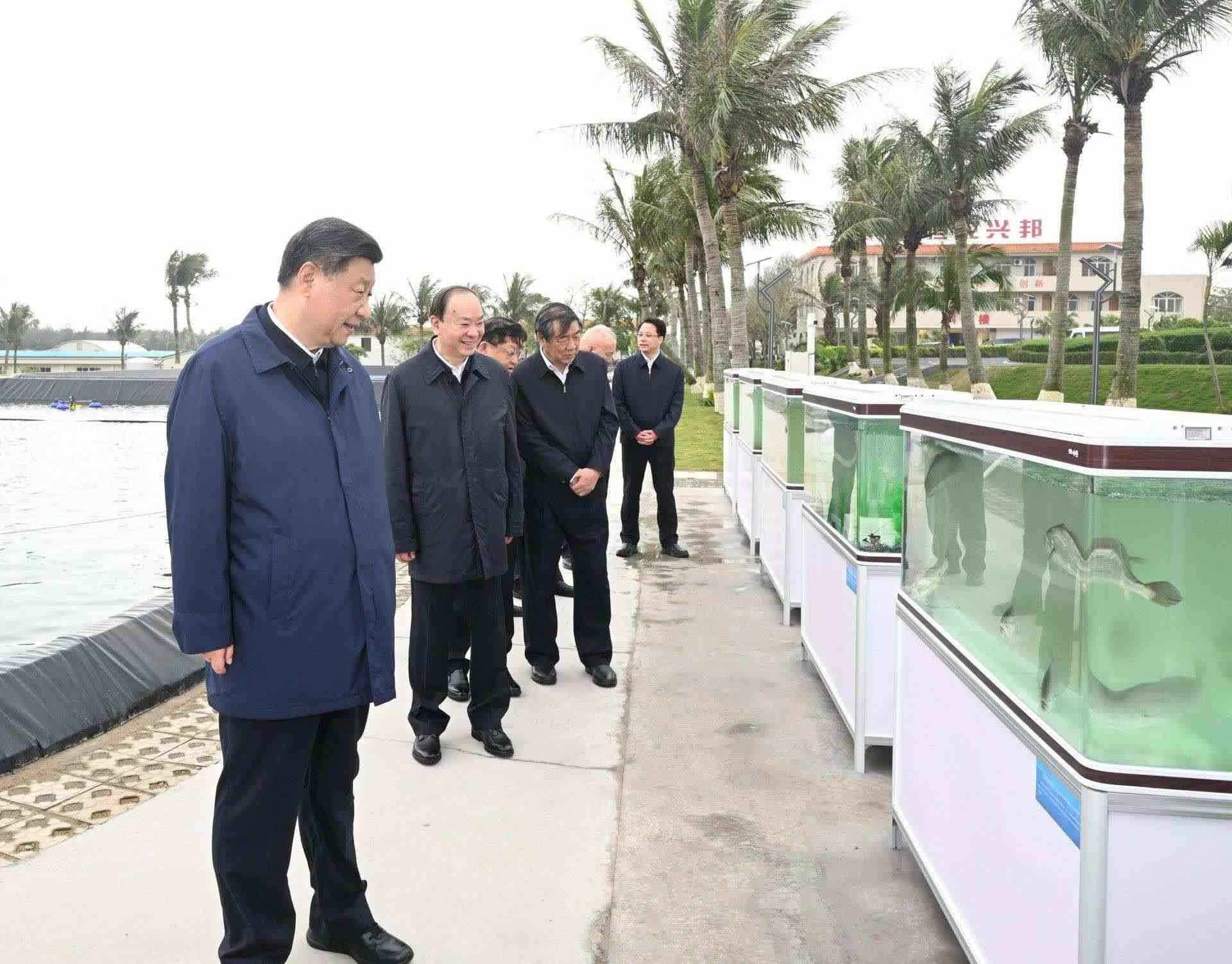 △2023年4月10日,習近平總書記在廣東湛江國家863計劃項目海水養(yǎng)殖種子工程南方基地考察調研。