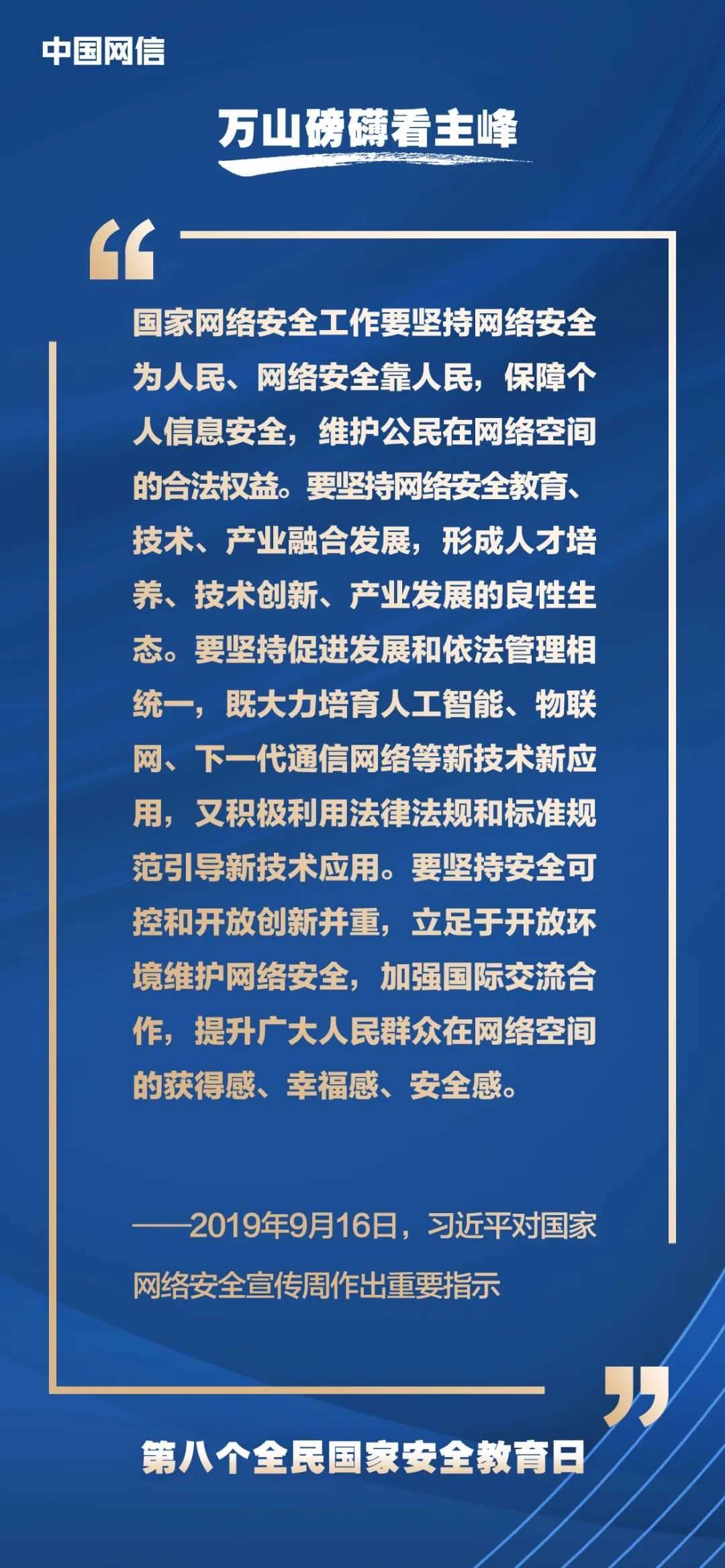 國家安全是安邦定國的重要基石,維護(hù)國家安全是全國各族人民根本利益所在。2023年4月15日是第八個(gè)全民國家安全教育日,今年的主題是“貫徹總體國家安全觀,增強(qiáng)全民國家安全意識(shí)和素養(yǎng),夯實(shí)以新安全格局保障新發(fā)展格局的社會(huì)基礎(chǔ)”。沒有網(wǎng)絡(luò)安全就沒有國家安全,以下摘取習(xí)近平總書記關(guān)于“網(wǎng)絡(luò)安全”的重要論述,與你一起回顧學(xué)習(xí)。