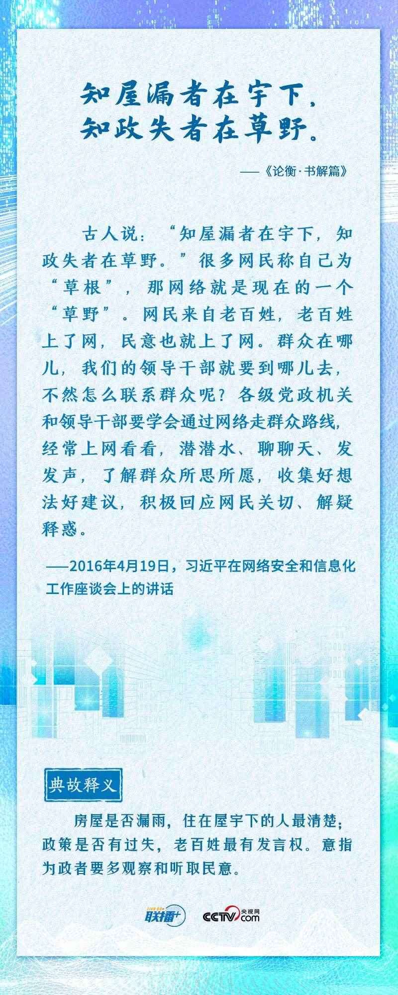 “知屋漏者在宇下,知政失者在草野”“日日行,不怕千萬(wàn)里;常常做,不怕千萬(wàn)事”......2016年4月19日,習(xí)近平總書記在網(wǎng)絡(luò)安全和信息化工作座談會(huì)上,從六個(gè)方面深刻回答了事關(guān)我國(guó)網(wǎng)信事業(yè)發(fā)展的一系列重大理論和實(shí)踐問(wèn)題,并多次引經(jīng)據(jù)典加以闡述。