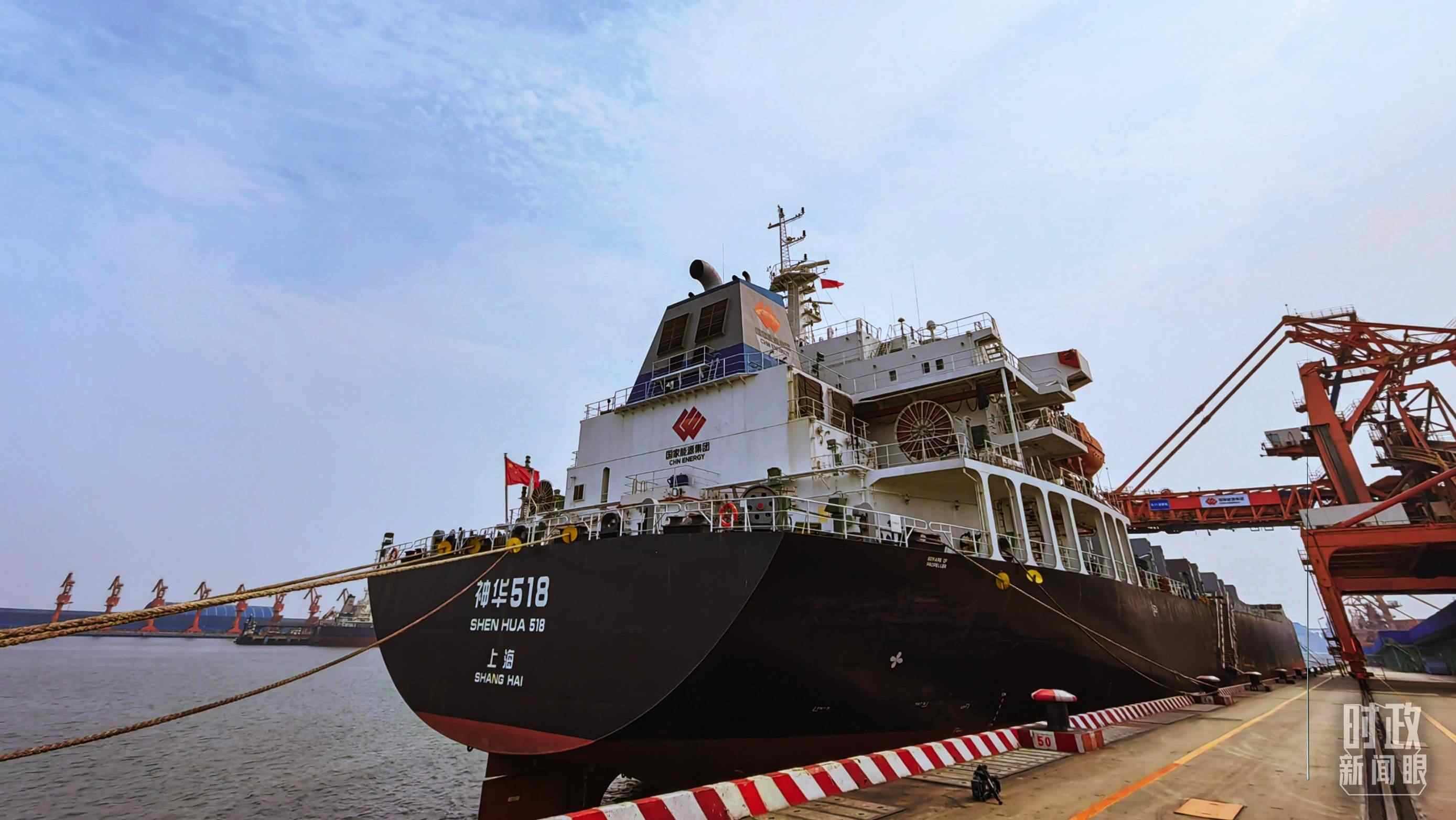 △??吭邳S驊港的神華518輪。(總臺央視記者張曉鵬拍攝)
