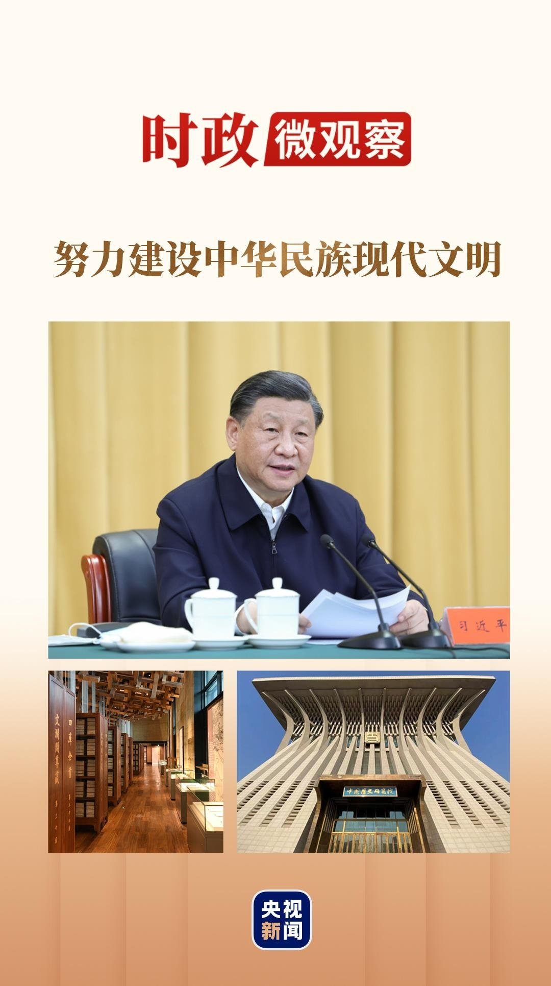 翌日,總書記又乘車來到中國歷史研究院,參觀文明起源和宅茲中國專題展,察看部分館藏珍貴古籍和文獻檔案,寄語“為中國式現(xiàn)代化建設貢獻更多中國史學的智慧和力量”。