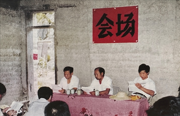 △1989年7月19日,習(xí)近平在福建壽寧縣下黨鄉(xiāng)調(diào)研并召開(kāi)現(xiàn)場(chǎng)辦公會(huì)。會(huì)場(chǎng)設(shè)在小學(xué)里,臺(tái)上是一張桌子、三把椅子,鋪在桌上的是村民從家里拿來(lái)的床單。