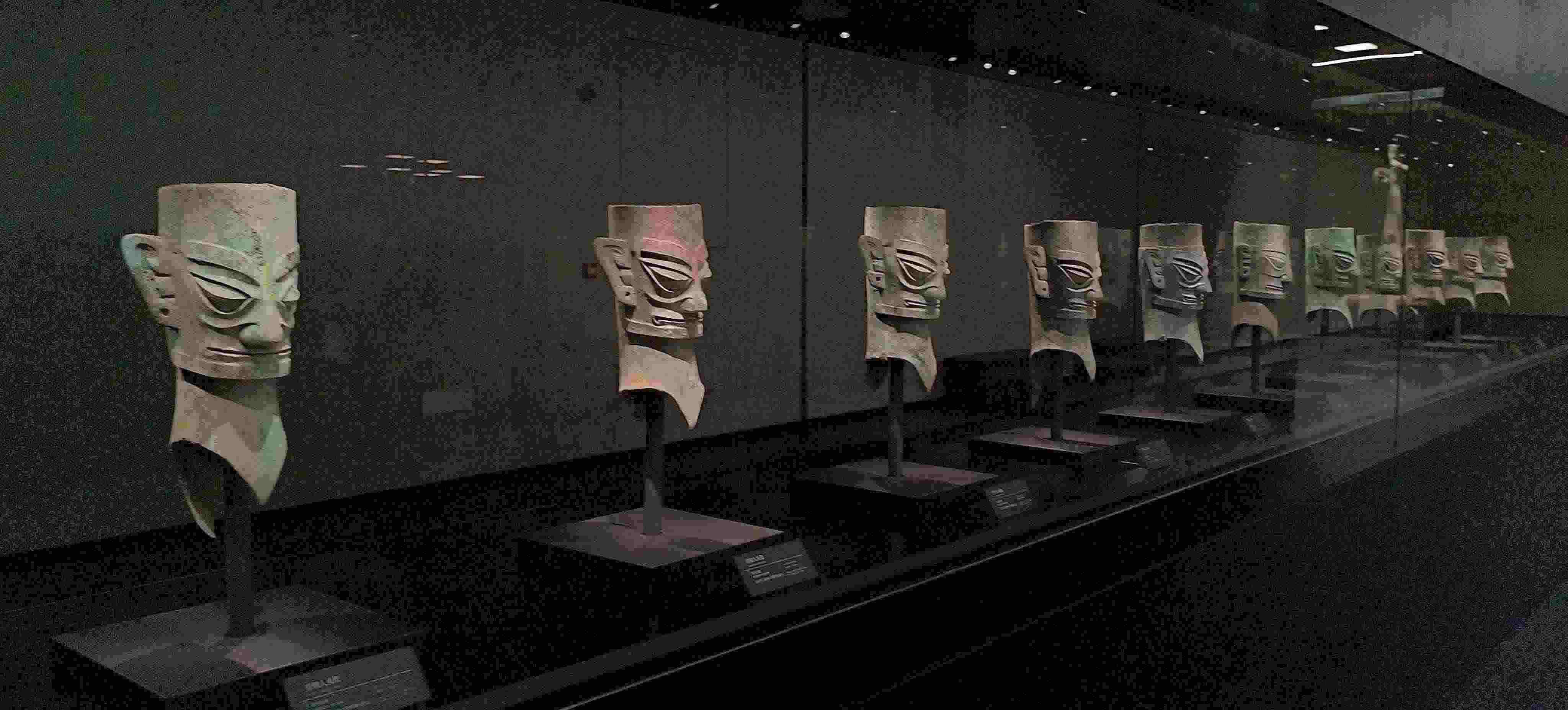 △三星堆博物館展出的青銅人頭像。(總臺央視記者范凱拍攝)