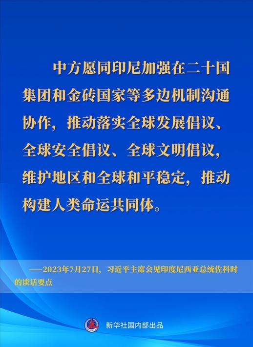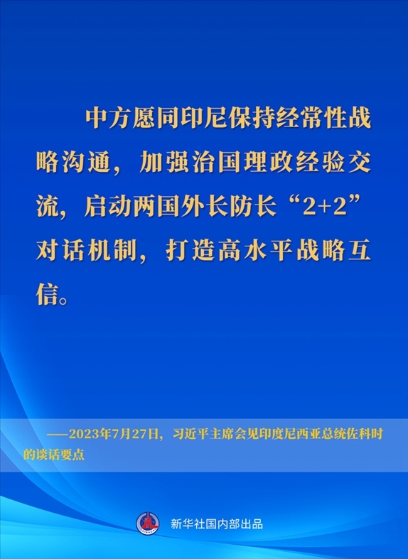 7月27日下午,國(guó)家主席習(xí)近平在成都會(huì)見(jiàn)來(lái)華出席第31屆世界大學(xué)生夏季運(yùn)動(dòng)會(huì)開幕式并訪華的印度尼西亞總統(tǒng)佐科。一起來(lái)看習(xí)近平主席在會(huì)見(jiàn)時(shí)的談話要點(diǎn)↓
