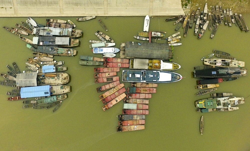 這是2019年12月17日在湖南常德漢壽縣蔣家嘴鎮(zhèn)拍攝的??吭诙赐ズ叺臐O船(無人機照片)。2020年1月1日零時起,長江流域332個自然保護區(qū)和水產種質資源保護區(qū)全面禁止生產性捕撈。長江流域各地重點水域也相繼進入為期十年的常年禁捕期。
