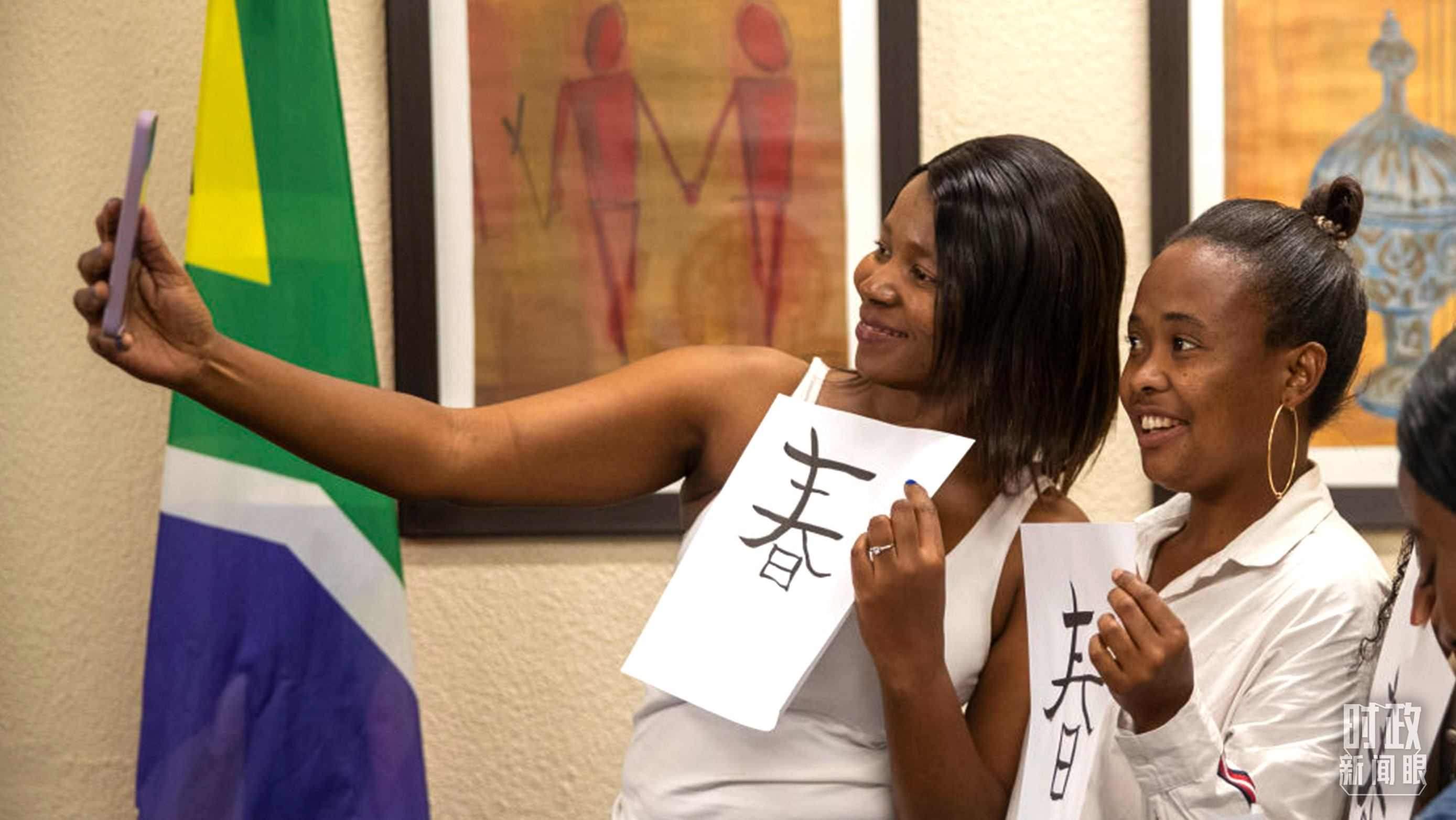 △南非學(xué)生與自己書(shū)寫(xiě)的漢字合影。(資料圖)