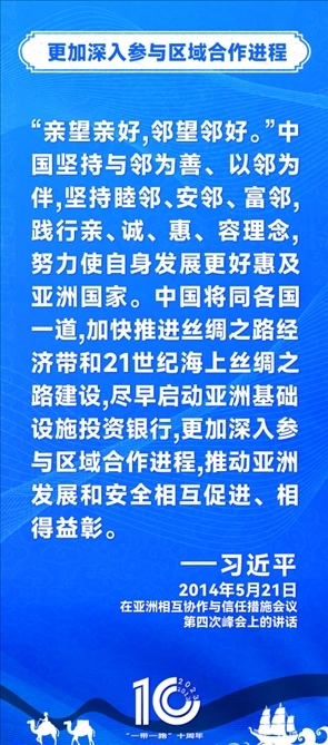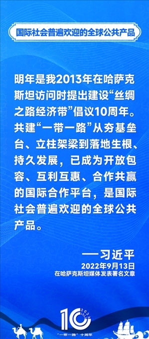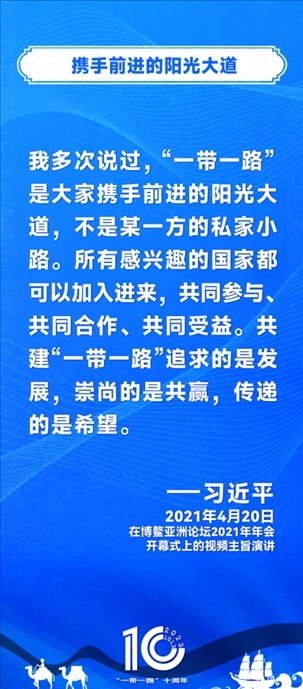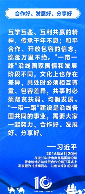 10年前,習(xí)近平主席提出共建“絲綢之路經(jīng)濟帶”和“21世紀海上絲綢之路”,即共建“一帶一路”倡議。過去10年來,習(xí)近平主席在多個場合發(fā)表講話和署名文章,為世界描繪了共建“一帶一路”互聯(lián)互通、合作共贏的宏偉藍圖。