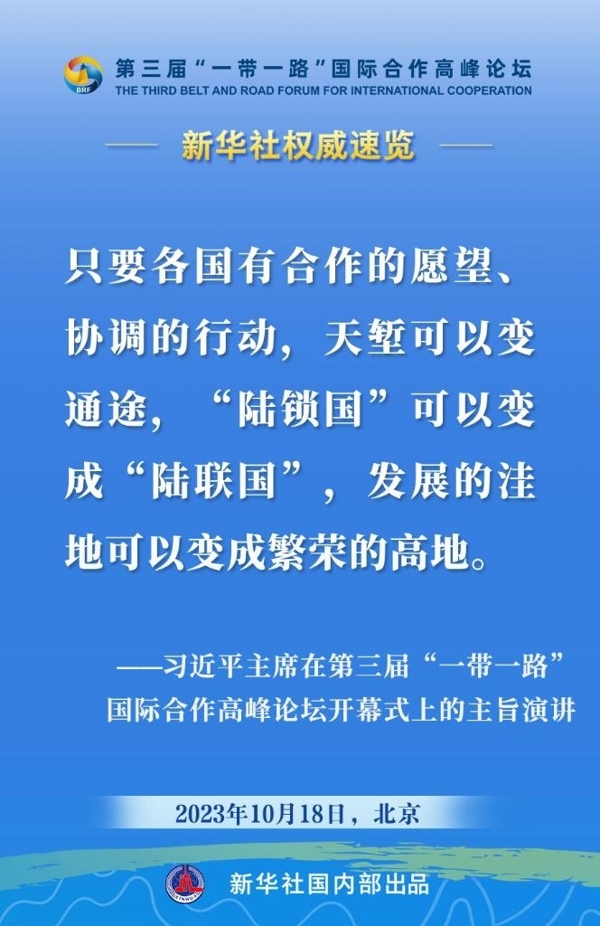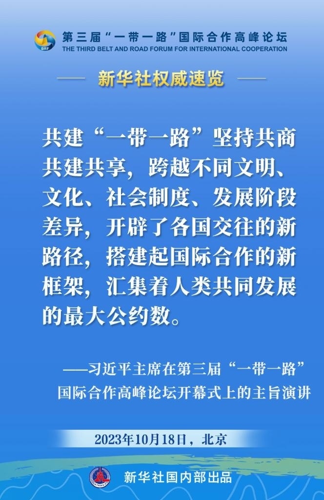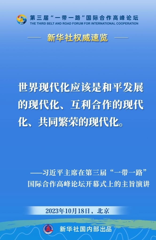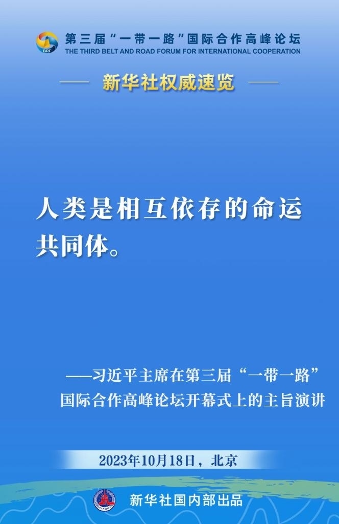 10月18日,國家主席習(xí)近平在第三屆“一帶一路”國際合作高峰論壇開幕式上發(fā)表主旨演講。一起來看金句。