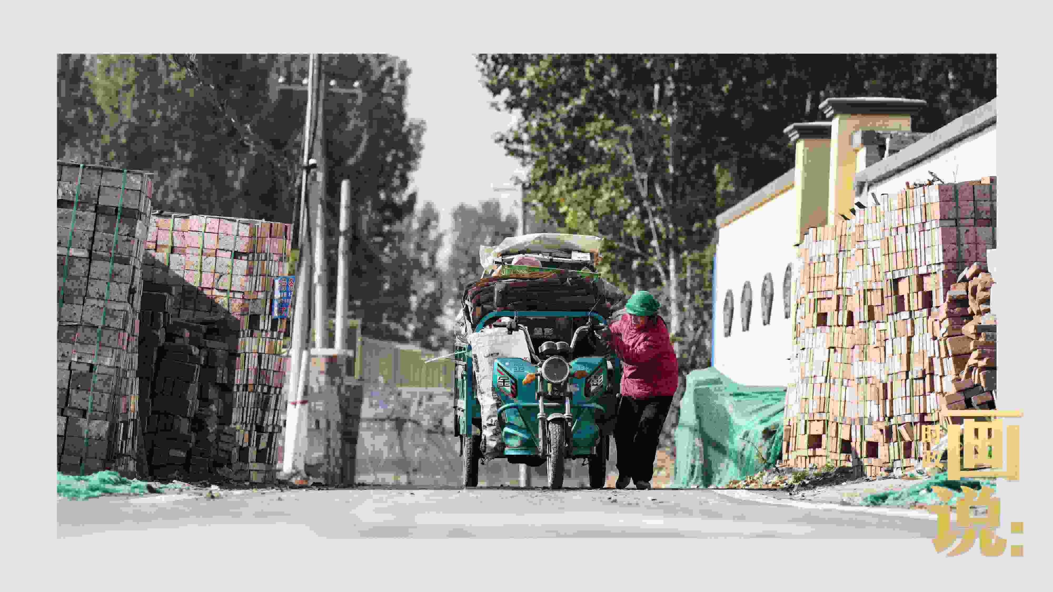 △買早點(diǎn)的老人走過村道。水峪嘴村,北京。大水過后,受災(zāi)嚴(yán)重的北京永定河流域村落加緊重建。