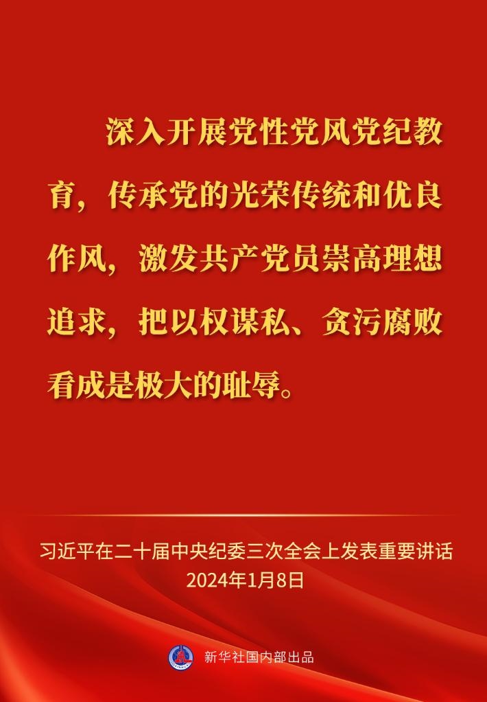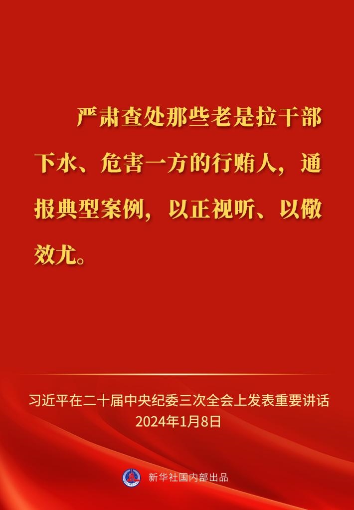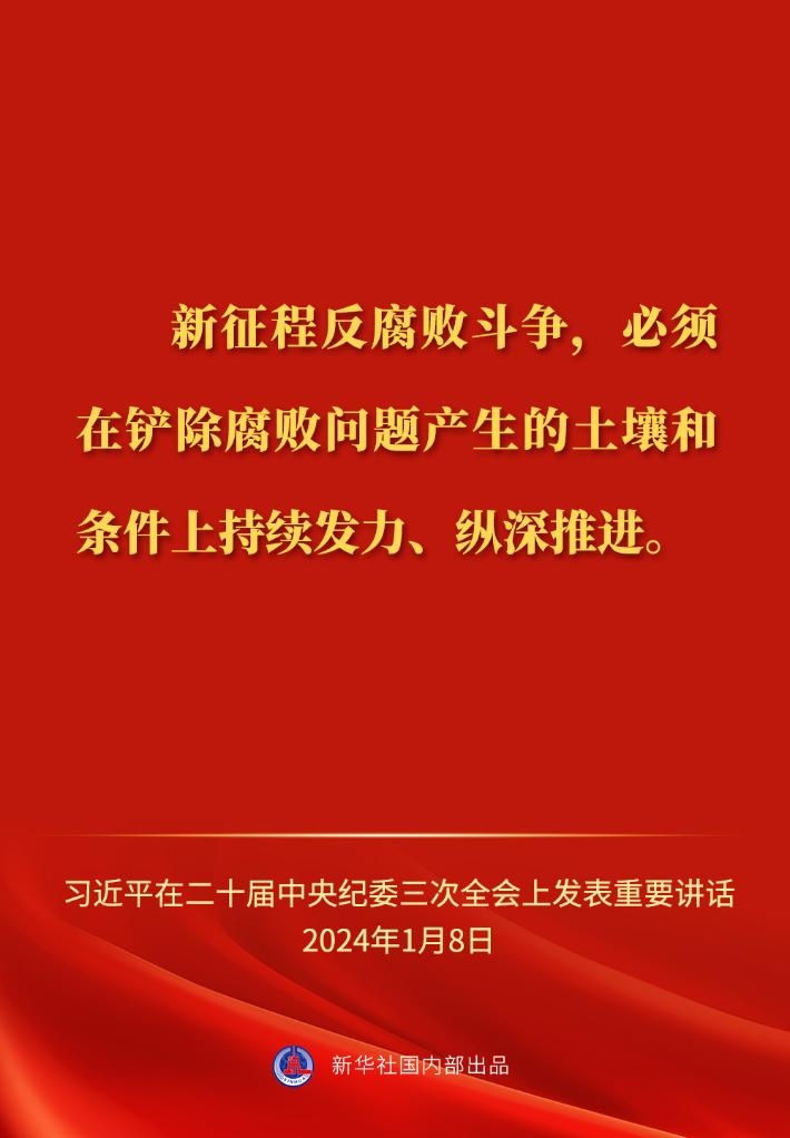 ??中共中央總書記、國家主席、中央軍委主席習(xí)近平8日上午在中國共產(chǎn)黨第二十屆中央紀律檢查委員會第三次全體會議上發(fā)表重要講話,一起來看金句。