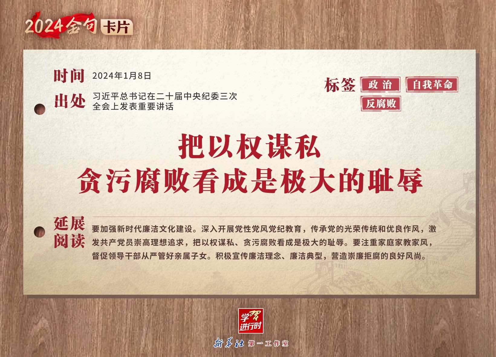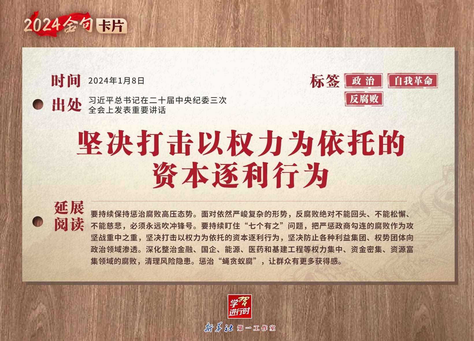 學(xué)習(xí)進(jìn)行時|2024金句卡片:中央紀(jì)委三次全會上,習(xí)近平總書記這些話振聾發(fā)聵