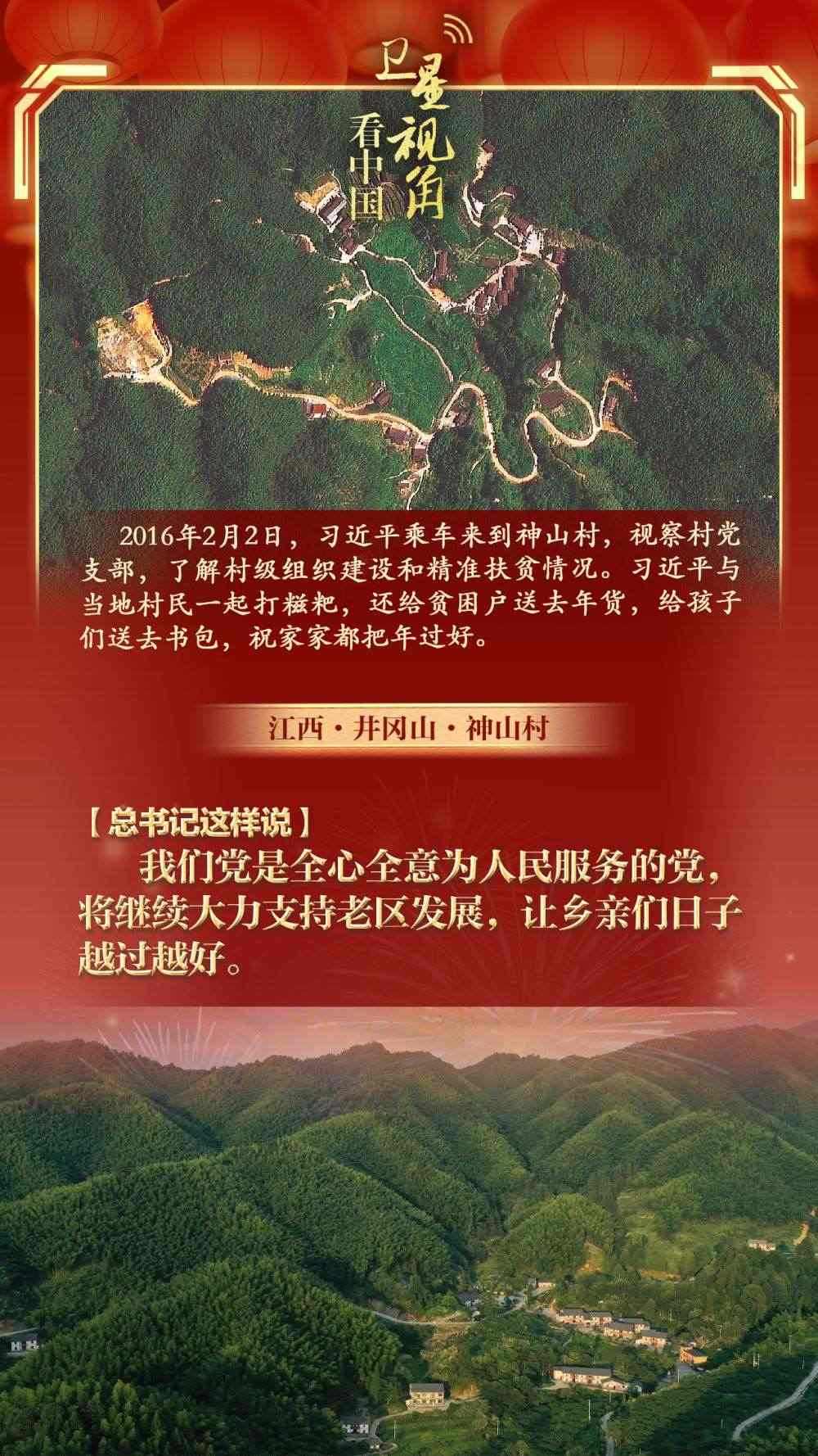 讓我們通過(guò)衛(wèi)星視角,看看總書記春節(jié)前夕考察過(guò)的那些鄉(xiāng)村,重溫總書記和村民們?cè)谝黄鸬臏嘏查g。