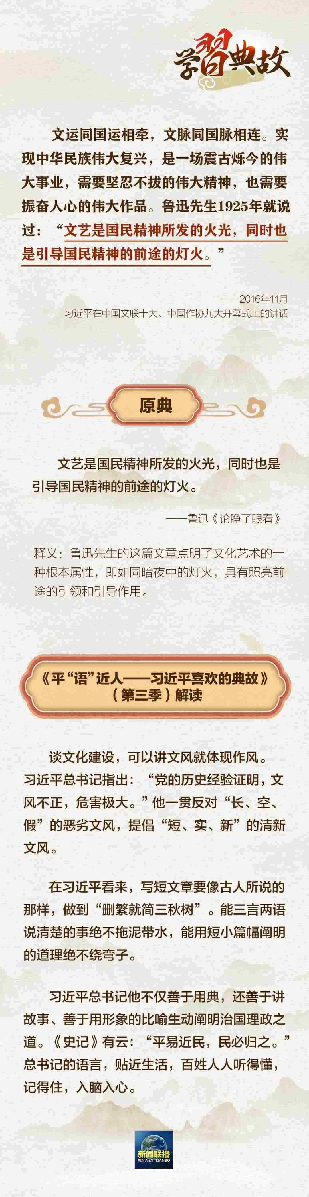 文運(yùn)同國運(yùn)相牽,文脈同國脈相連。文化自信是一個(gè)國家、一個(gè)民族發(fā)展中,最基本、最深沉、最持久的力量。黨的二十大報(bào)告中指出:“全面建設(shè)社會(huì)主義現(xiàn)代化國家,必須堅(jiān)持中國特色社會(huì)主義文化發(fā)展道路。”圍繞“文化建設(shè)”這一主題,總書記曾講到哪些典故?一起學(xué)習(xí)↓↓↓