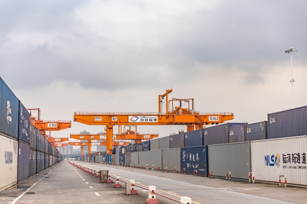 自重慶國(guó)際物流樞紐園區(qū)向南,西部陸海新通道直達(dá)廣西欽州港,“中國(guó)制造”在這里走向全球,來自全球的貨物又從這里進(jìn)入中國(guó)市場(chǎng)。