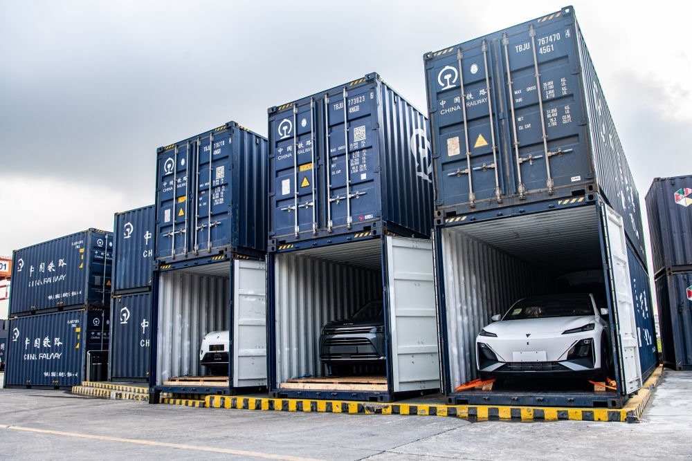 這是2024年4月22日在重慶團(tuán)結(jié)村中心站拍攝的出口汽車。