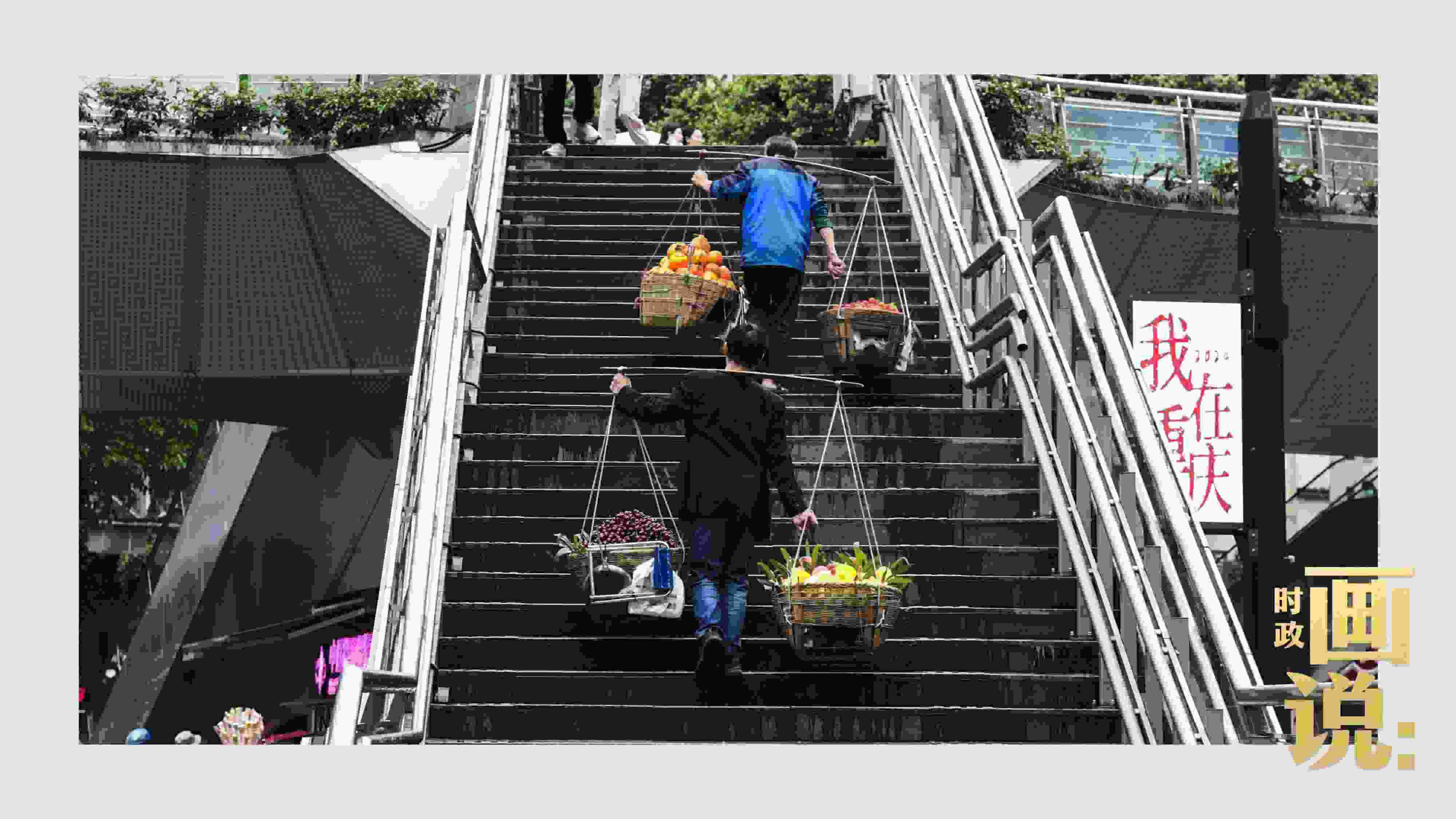 △棗子嵐埡正街,急匆匆的快遞“小哥”跑過五彩瓷磚臺(tái)階。