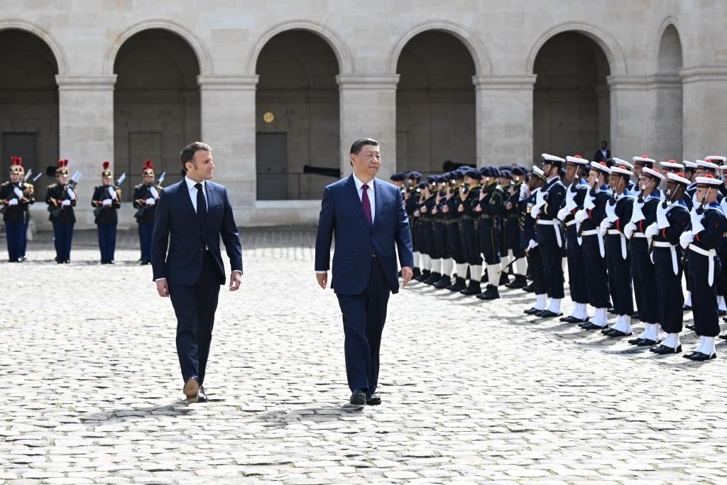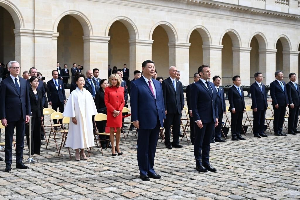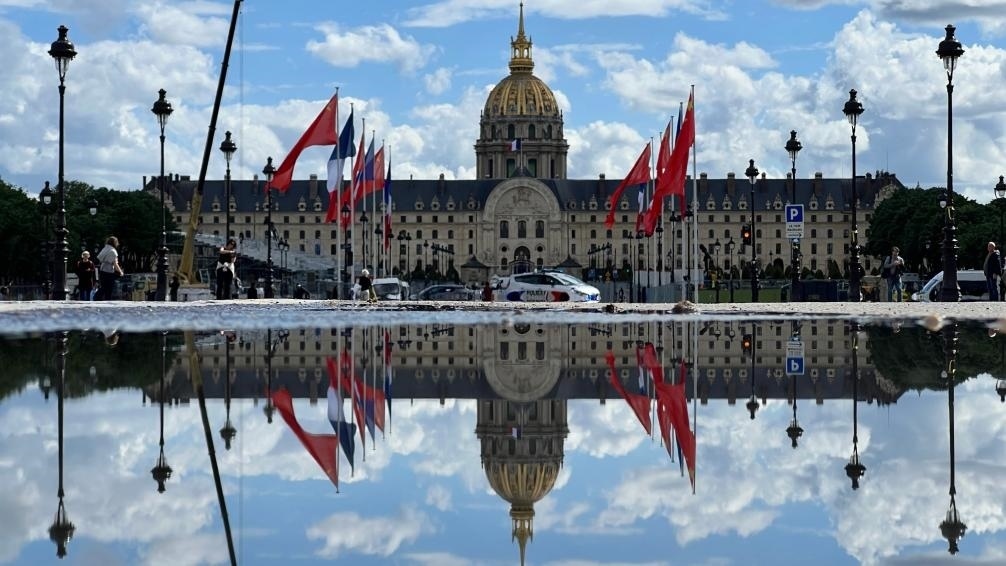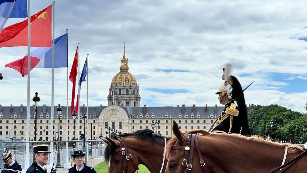 五月的巴黎,風(fēng)和景明。塞納河畔,榮軍院金色穹頂熠熠生輝,五星紅旗和藍(lán)白紅三色旗迎風(fēng)飄揚。