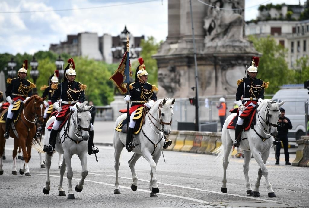 歡迎儀式后,習(xí)近平和夫人彭麗媛在共和國衛(wèi)隊148名騎兵組成的禮兵馬隊和摩托車隊護衛(wèi)下,乘車前往愛麗舍宮。