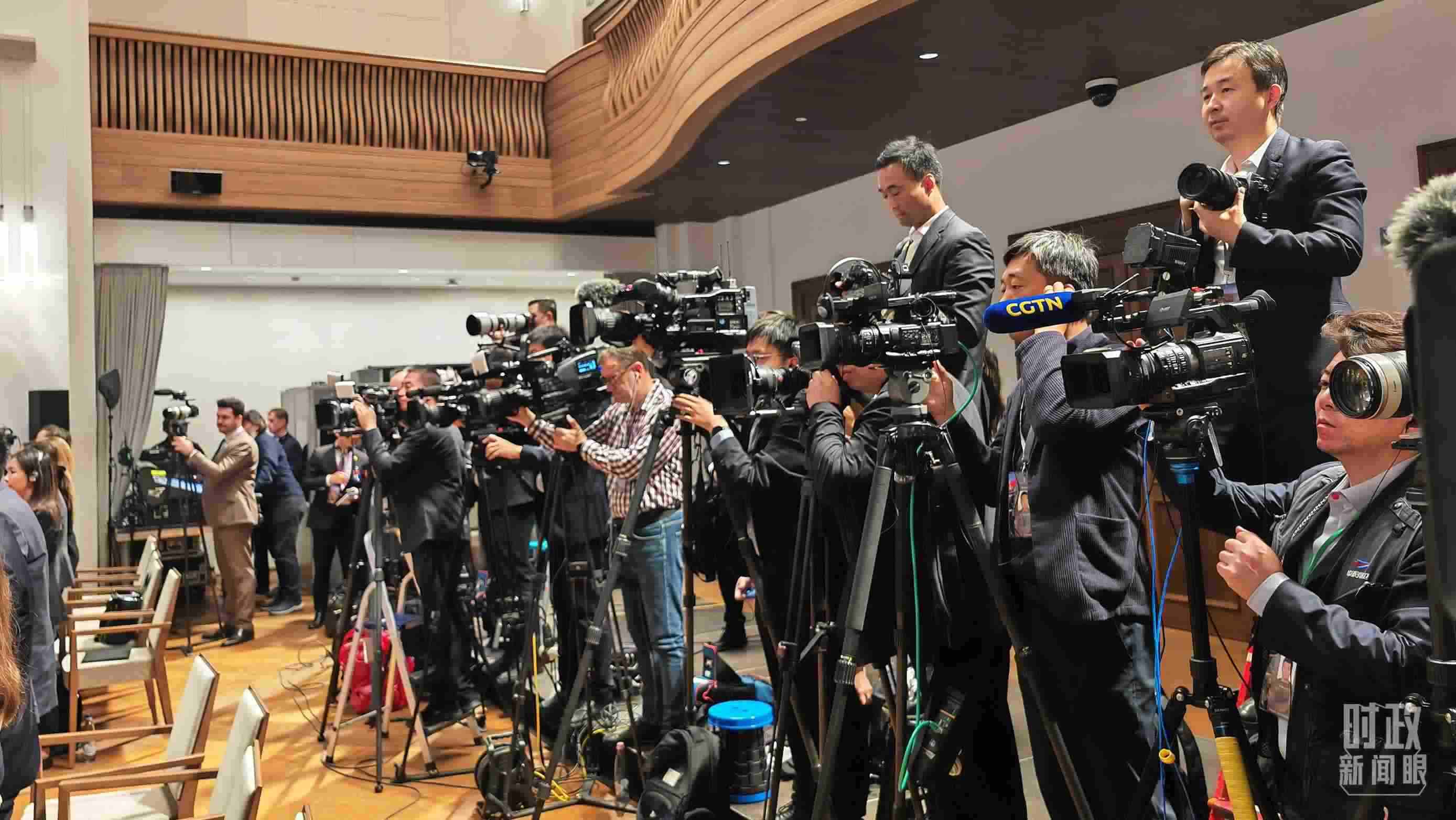 △習(xí)主席同歐爾班總理共同會(huì)見記者,現(xiàn)場(chǎng)記者云集。(總臺(tái)央廣記者馬喆拍攝)
