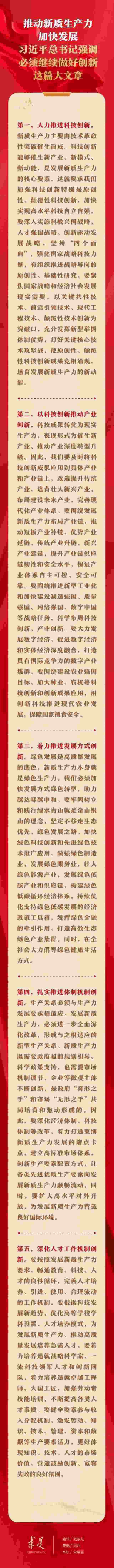6月1日出版的第11期《求是》雜志刊發(fā)習(xí)近平總書記重要文章《發(fā)展新質(zhì)生產(chǎn)力是推動高質(zhì)量發(fā)展的內(nèi)在要求和重要著力點(diǎn)》。在這篇重要文章中,習(xí)近平總書記從科技創(chuàng)新、產(chǎn)業(yè)創(chuàng)新、發(fā)展方式創(chuàng)新、體制機(jī)制創(chuàng)新、人才工作機(jī)制創(chuàng)新等五個(gè)方面,對推動新質(zhì)生產(chǎn)力加快發(fā)展提出明確要求。