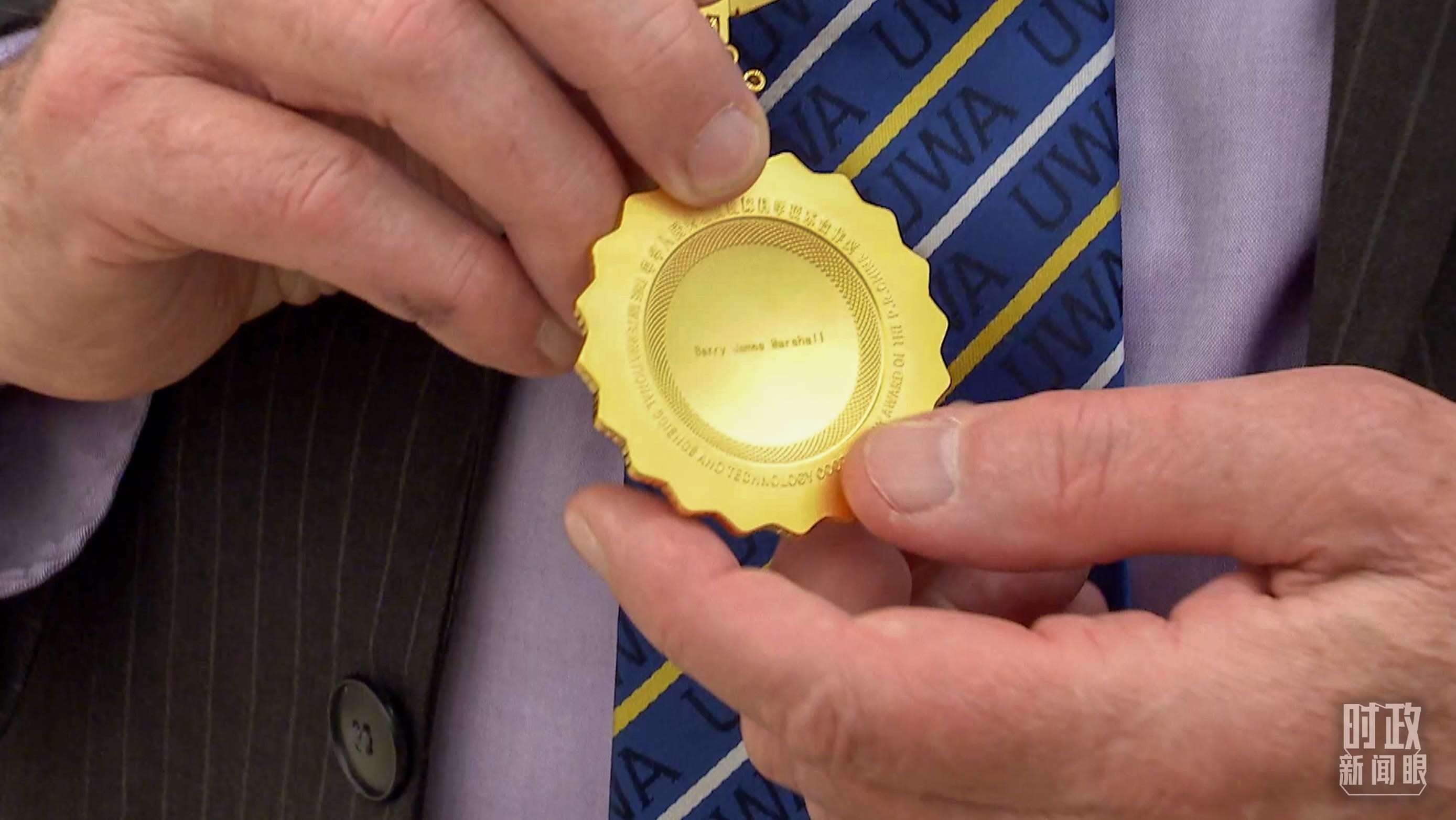 △獲獎(jiǎng)的外籍科技工作者,獎(jiǎng)?wù)碌谋趁婵逃蝎@獎(jiǎng)?wù)咝彰?。(總臺(tái)國(guó)廣記者李晉、央視記者姚瑤拍攝)