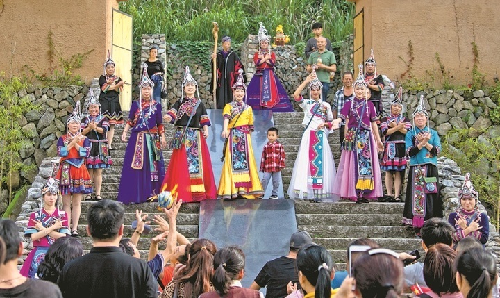 畬族婚嫁民俗,變?yōu)槁糜萎a(chǎn)品,不僅在雙后崗村演出,還走向大均鄉(xiāng)等地,成為一道特色風景。