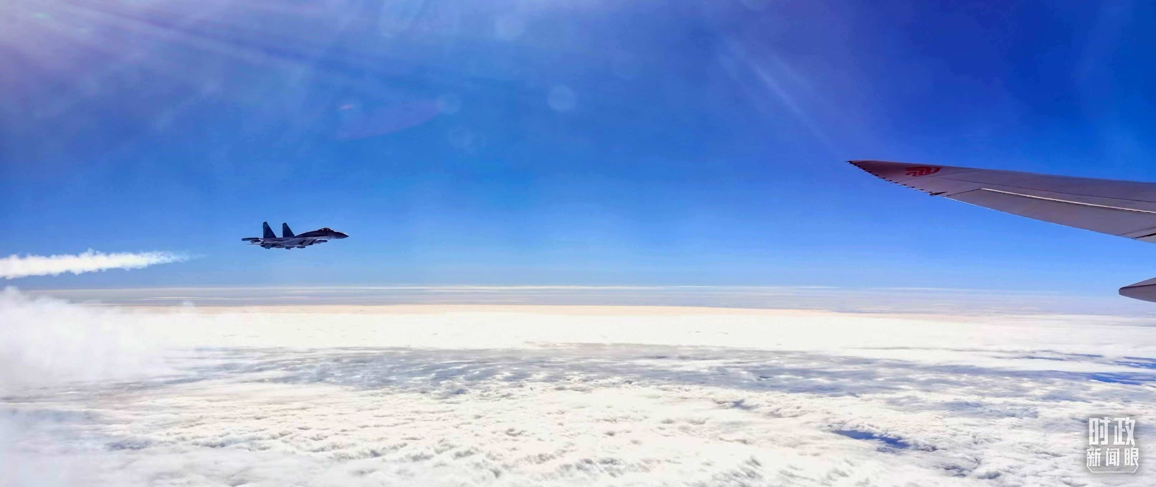 △ 習(xí)主席乘坐的專(zhuān)機(jī)進(jìn)入俄羅斯領(lǐng)空時(shí),俄空軍戰(zhàn)機(jī)升空護(hù)航。(總臺(tái)央視記者李錚拍攝)