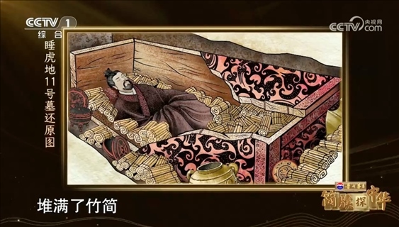 1975年底,考古學家在云夢縣睡虎地發(fā)掘出12座戰(zhàn)國晚期至秦代的墓葬。隨著11號秦墓的開啟,人們驚奇地看見,千余片竹簡層層疊壓,有序擺放在墓主人周圍,竹簡上的字跡清晰可見,這是中國考古史上首次發(fā)現(xiàn)的秦簡。